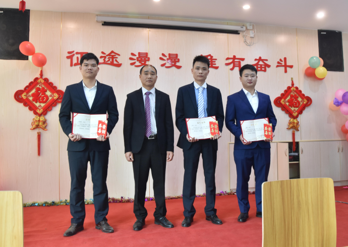 生產(chǎn)部經(jīng)理陽(yáng)專(zhuān)為周偉群、胡勇波、李加龍、唐江明頒發(fā)先進(jìn)個(gè)人獎(jiǎng)